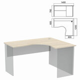 Стол компактный "Арго", 1400х1200х760 мм, правый, ясень шимо (КОМПЛЕКТ)