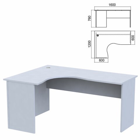 Стол компактный "Арго", 1600х1200х760 мм, левый, серый (КОМПЛЕКТ)