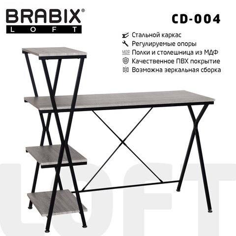 Функциональность стола обеспечивается тремя дополнительными полками, где можно хранить необходимые для вашей работы вещи: от канцелярских принадлежностей и книг до ноутбука. Оптимальные габариты BRABIX "LOFT CD-004" подходят даже для небольших помещений.
