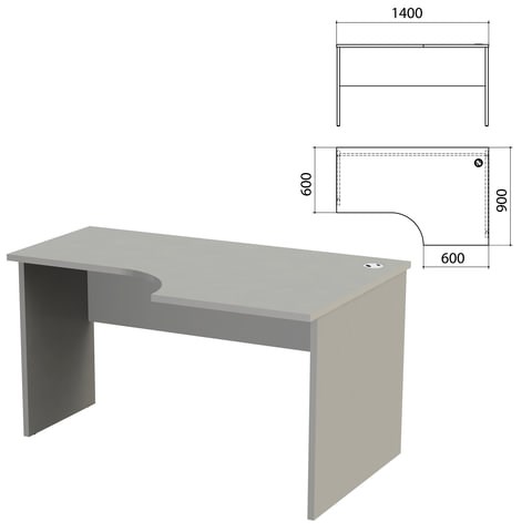 Стол письменный эргономичный "Этюд", 1400х900х750 мм, правый, серый (КОМПЛЕКТ)
