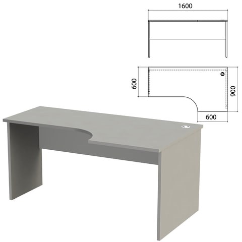 Столешница стола эргономичного "Этюд", 1600х900х750 мм, правый, серый, 401672-03 Код 640507 1 шт.