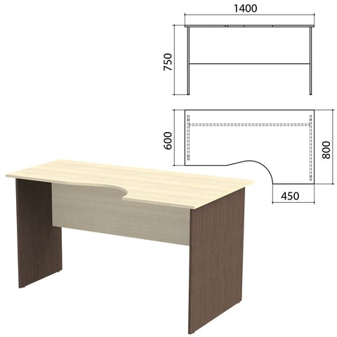 Стол письменный эргономичный "Канц", 1400х800х750 мм, правый, цвет дуб молочный/венге (КОМПЛЕКТ)