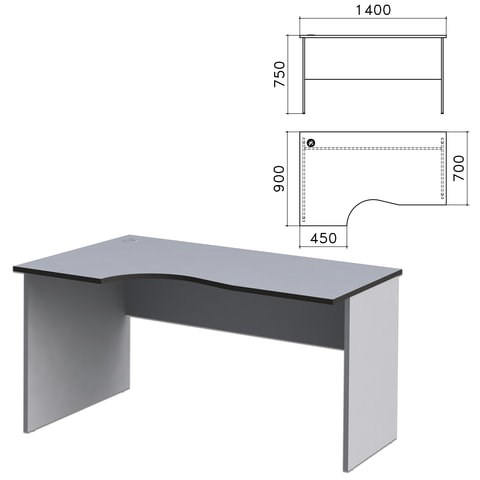 Стол письменный эргономичный "Монолит", 1400х900х750 мм, левый, цвет серый, СМ5.11