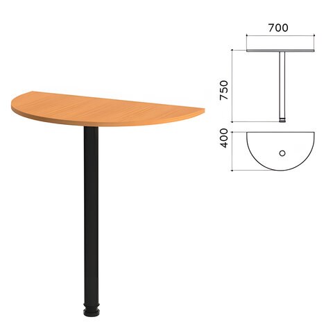 Стол приставной полукруг "Фея", 700х400х750 мм, БЕЗ ОПОРЫ, орех милан,ПФ10.5 Код 640024 1 шт.