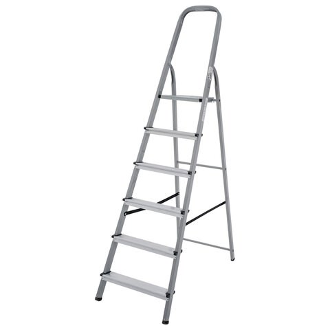 Стремянка сталь / алюминий 6 ступени, высота площадки 1,25м, дуга 0,6м, площадка 26х26см, нагрузка 150кг, вес 7кг НОВАЯ ВЫСОТА, 1130106