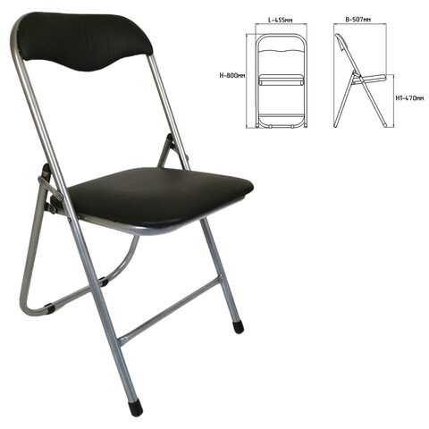 Стул складной для дома и офиса РС04, серебристый каркас, кожзам черный