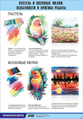 Таблица демонстрационная "Пастель и восковые мелки. Особенности и приёмы работы" (винил 70х100)