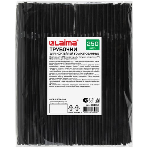 Стильные гофрированные черные трубочки для коктейлей LAIMA отлично подойдут как для предприятий общественного питания, так и для домашнего использования.