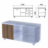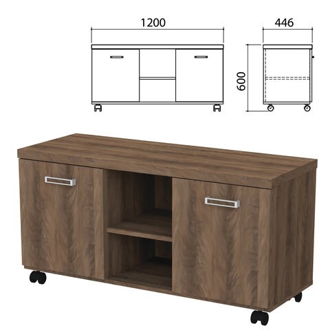 Мобильная тумба-комод универсального назначения. Может использоваться как отдельно стоящая для размещения оргтехники, телефонии, хранения канцтоваров и бумаги, так и закатываться под стол руководителя, разделяя рабочую зону и создавая дополнительный уют.