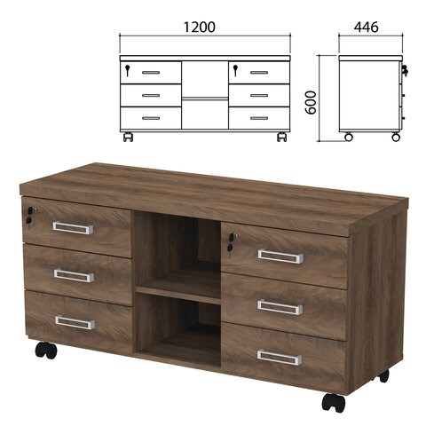 Тумба-креденция "Приоритет", 1200х446х600 мм, 6 ящиков, лагос, (КОМПЛЕКТ)