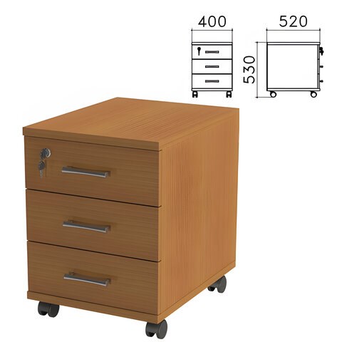 Тумба подкатная "Монолит", 400х520х530 мм, 3 ящика, замок, цвет орех гварнери, ТМ25.3