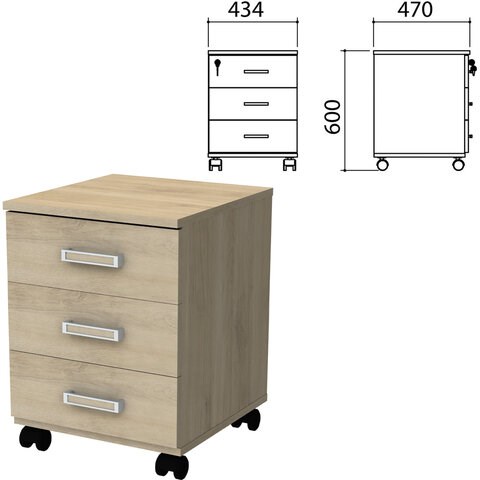 Тумба подкатная "Приоритет", 434х470х600 мм, 3 ящика, замок, кронберг, К-923, К-923 кронберг