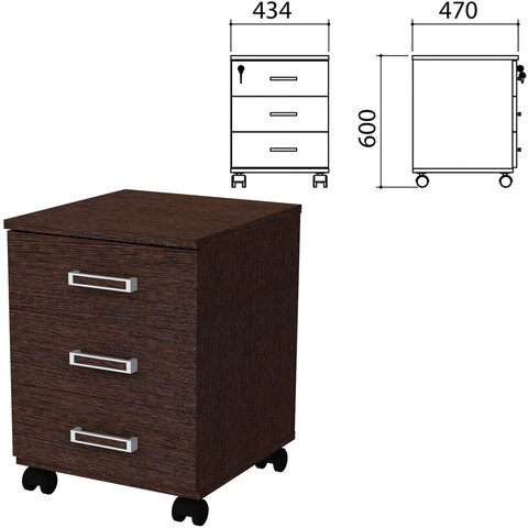 Тумба подкатная "Приоритет", 434х470х600 мм, 3 ящика, замок, венге, К-923, К-923 венге
