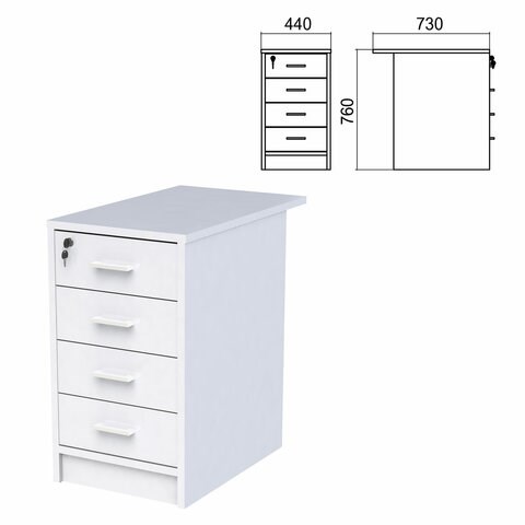 Тумба приставная "Арго", 440х730х760 мм, 4 ящика, замок, серый (КОМПЛЕКТ)