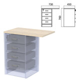 Тумба (каркас БЕЗ КРЫШКИ) приставная "Арго", 440х450х740 мм, 4 ящика, замок, ясень шимо Код 641402 1 шт.