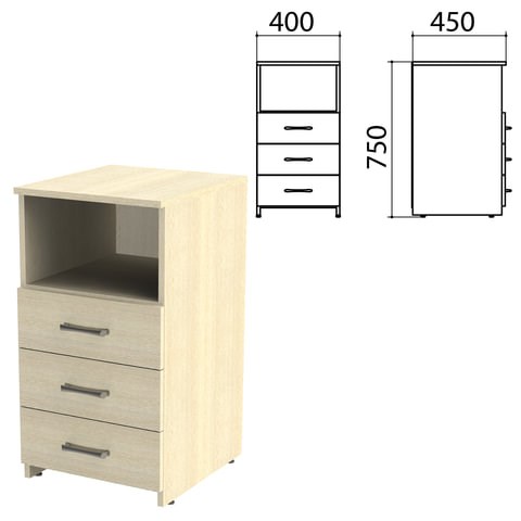 Тумба приставная "Канц", 400х450х750 мм, 3 ящика, полка, цвет дуб молочный (КОМПЛЕКТ)