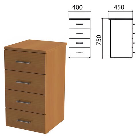 Тумба (каркас БЕЗ КРЫШКИ) приставная "Монолит", 400х416х728 мм, 4 ящика, орех гварнери, ТМ05.3 Код 640145 1 шт.