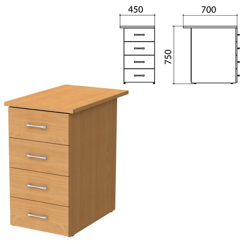 Тумба (каркас БЕЗ КРЫШКИ) приставная "Монолит", 400х595х728 мм, 4 ящика, бук бавария, ТМ06.1 Код 640147 1 шт.