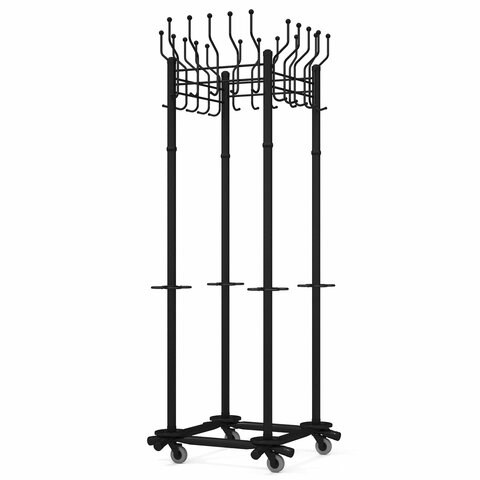 Вешалка на колесах на 20 крючков с держателем для зонтов "Гардикс-4К", металл, черная