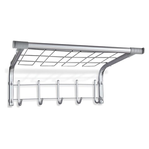 Вешалка настенная SHT-WH7, 297х705х407 мм, 5 крючков + 2 дополнительных крючка + полка, металл/пластик, хром лак