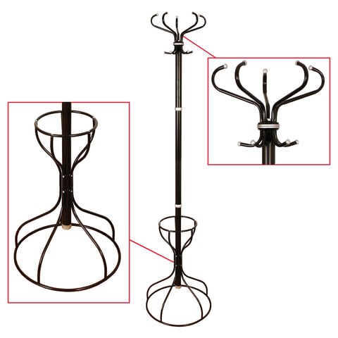 Вешалка-стойка Ажур-3Ф, 1,9 м, основание 46 см, 5 крючков+место для зонтов, металл, черная