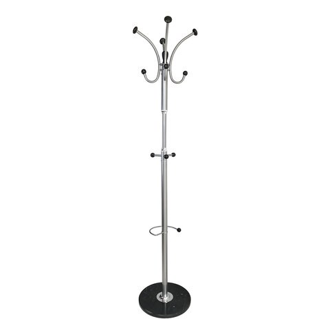 Вешалка-стойка BRABIX "CR-855" на мраморном диске, металл, 4+3 крючка, цвет серебристый, 606434