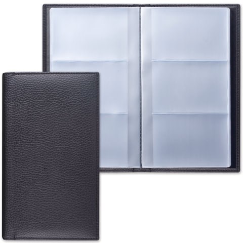 Визитница трехрядная BRAUBERG "Favorite", на 144 визитки, под фактурную кожу, черная, 231655