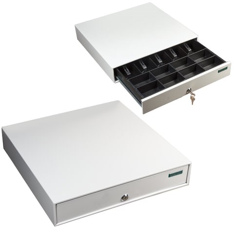 Предназначен для хранения денежной массы при денежных расчетах на контрольно-кассовой машине (ККМ). Корпус ящика выполнен из металла.