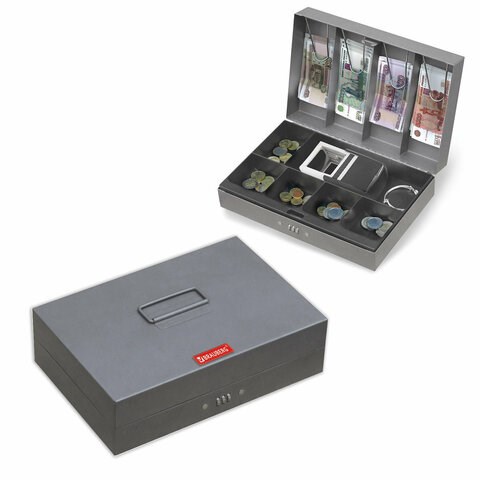 Ящик для денег, ценностей, документов, печатей, 80х195х290 мм, кодовый замок, темно-серый, BRAUBERG, 290457