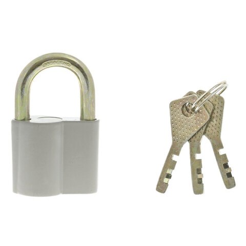 Легкий навесной замок с прочным окрашенным корпусом. Сложная конструкция замка значительно снижает вероятность взлома. В комплекте 3 ключа.