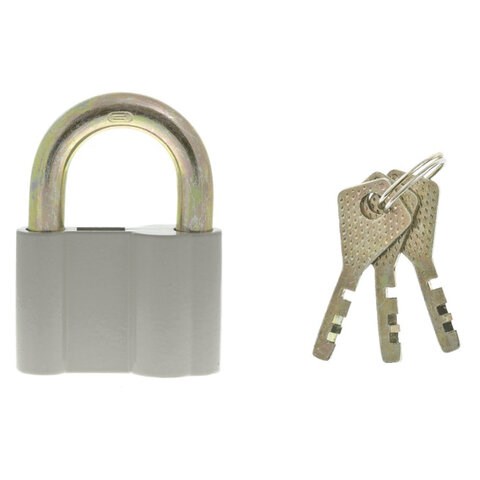 Легкий навесной замок с прочным окрашенным корпусом. Сложная конструкция замка значительно снижает вероятность взлома. В комплекте 3 ключа.