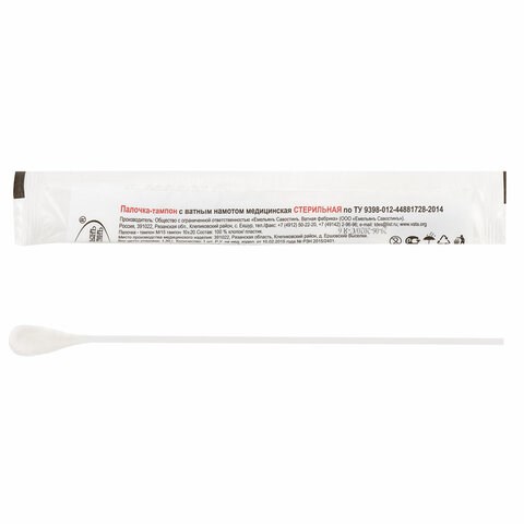 Палочка-тампон с ватным намотом поставляется в индивидуальной упаковке, изготовлена по ТУ 9398-012-44881728-2014 и представляет собой гигроскопичный хлопковый тампон на круглой пластиковой палочке.
